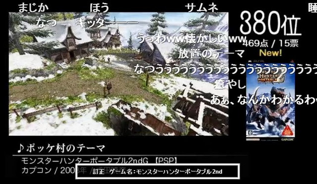 ここにきて五年前の名曲がNewなのも驚きですが…380位「ポッケ村のテーマ(成田暁彦)」