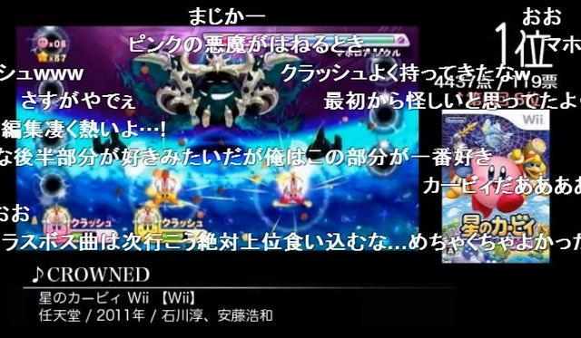 堂々の1位に輝いたのは!星のカービィWiiより「CROWNED(石川淳、安藤浩和)」!カービィの最新作にして一世風靡のラスボス曲!今後も高めに残り続けると予想されています。いやはや、これは意外でした。