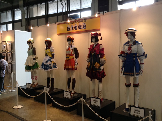 ※歴代ギルドガールズの制服。右からキャシー、コノハ、アイシャ、シャーリー、パティ(写真はモンハンフェスタのときに自分で撮ってきたものです。)