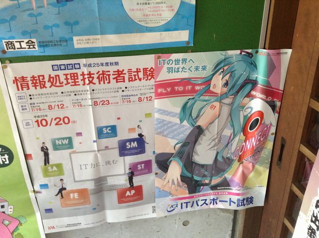 おほほおおおおおおううう!!!こんなところでミクさんに会えるなんて!!「ITパスポート試験」…?パソコン関係かな?ミクさんに会えたのでここはもう満足。